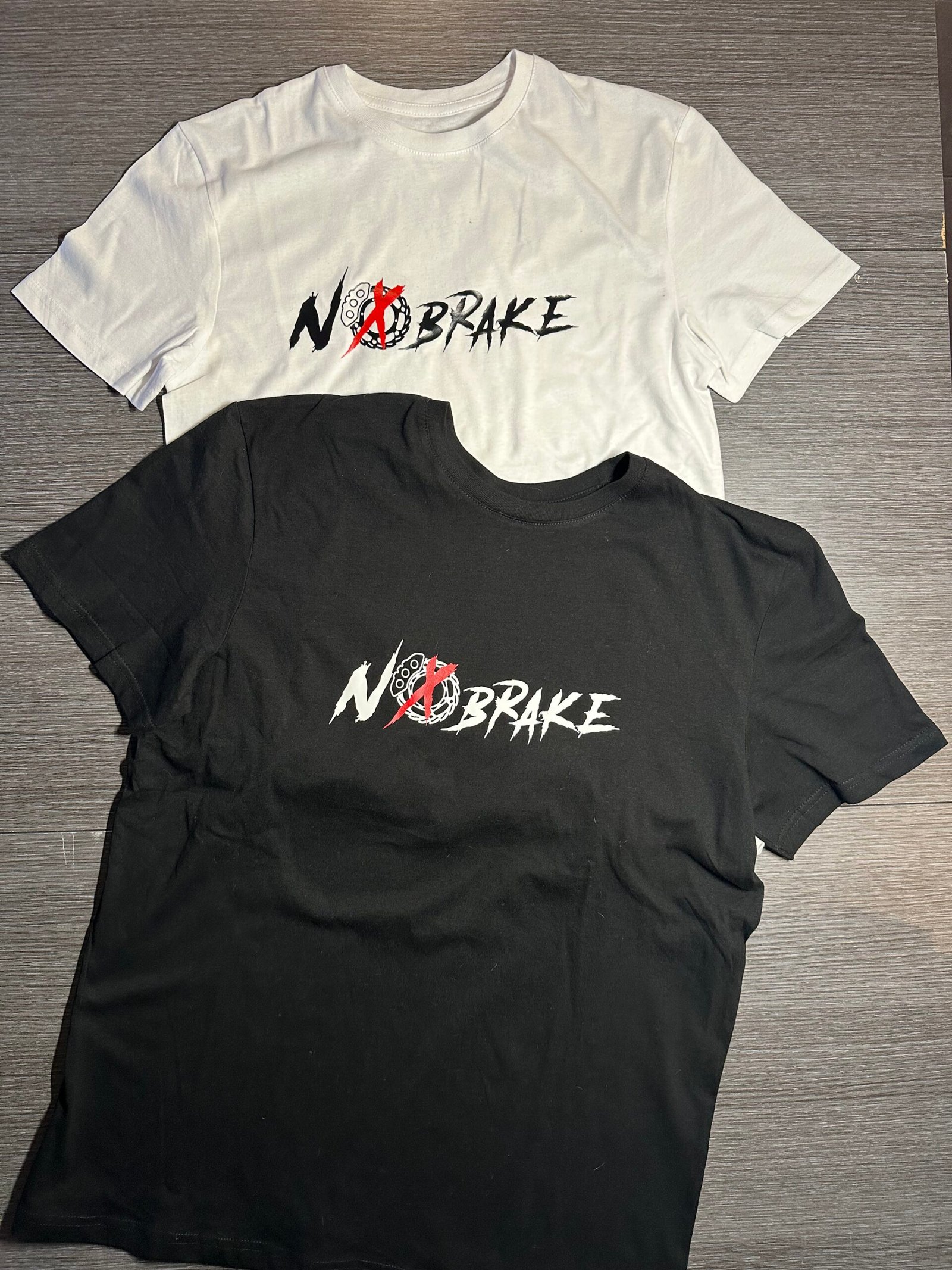 T-shirt NOBRAKE 100% coton, coupe regular. Logo signature imprimé sur le devant. Disponible en noir et blanc.